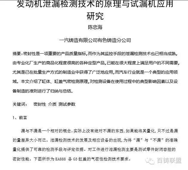 铸造发动机泄露检测技术的原理与试漏机应用研究